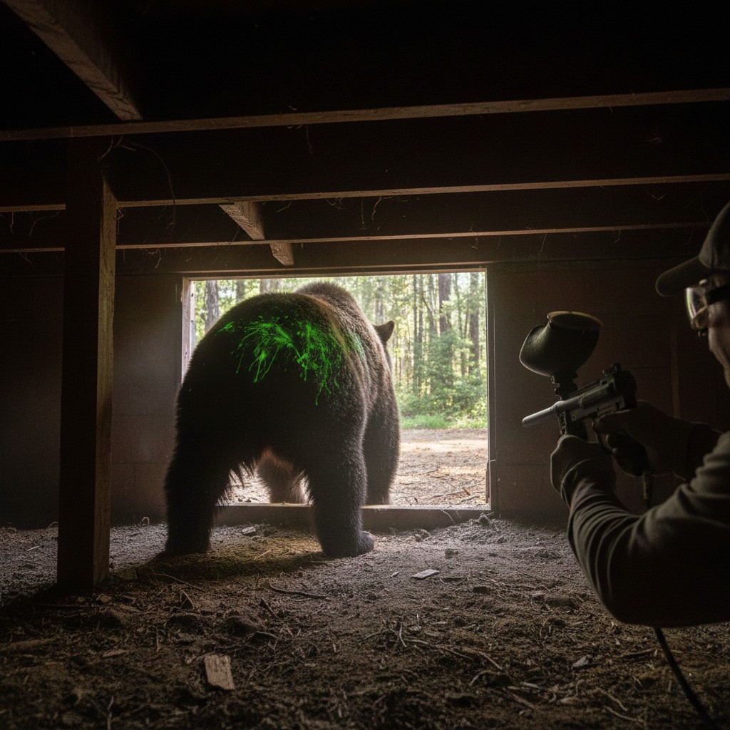Mardi dernier, un membre de l’équipe n’a pas hésité à ramper lui-même dans le vide sanitaire pour déloger la bête. Pour forcer l’ours à sortir sans le blesser, l’expert a utilisé des balles de paintball remplies d’huile végétale, visant l’arrière-train de l’animal. La tactique a fonctionné instantanément : l’ours a décapité la sortie et a pris la fuite en moins de 20 minutes, sous l’œil soulagé du propriétaire.